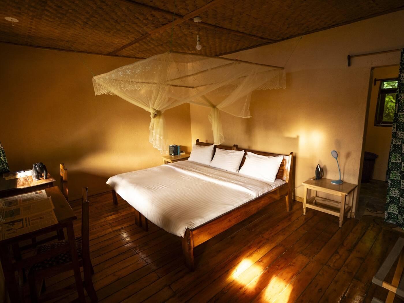 In der Unterkunft steht dir Wlan zur Verfügung. Mit den anderen Volunteers und Teammitgliedern kannst du nach getaner Arbeit in dem Gemeinschaftsbereich zusammensitzen und dich mit ihnen über den Tag austauschen. Genieße den Blick auf das umliegende Waldgelände - die Heimat der gefährdeten Gorillas!