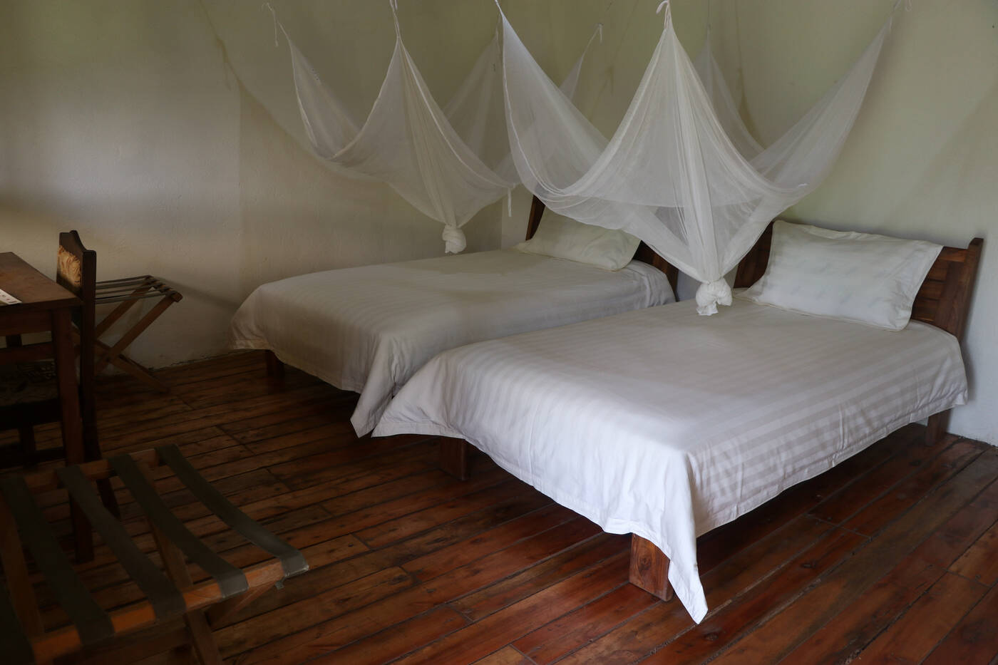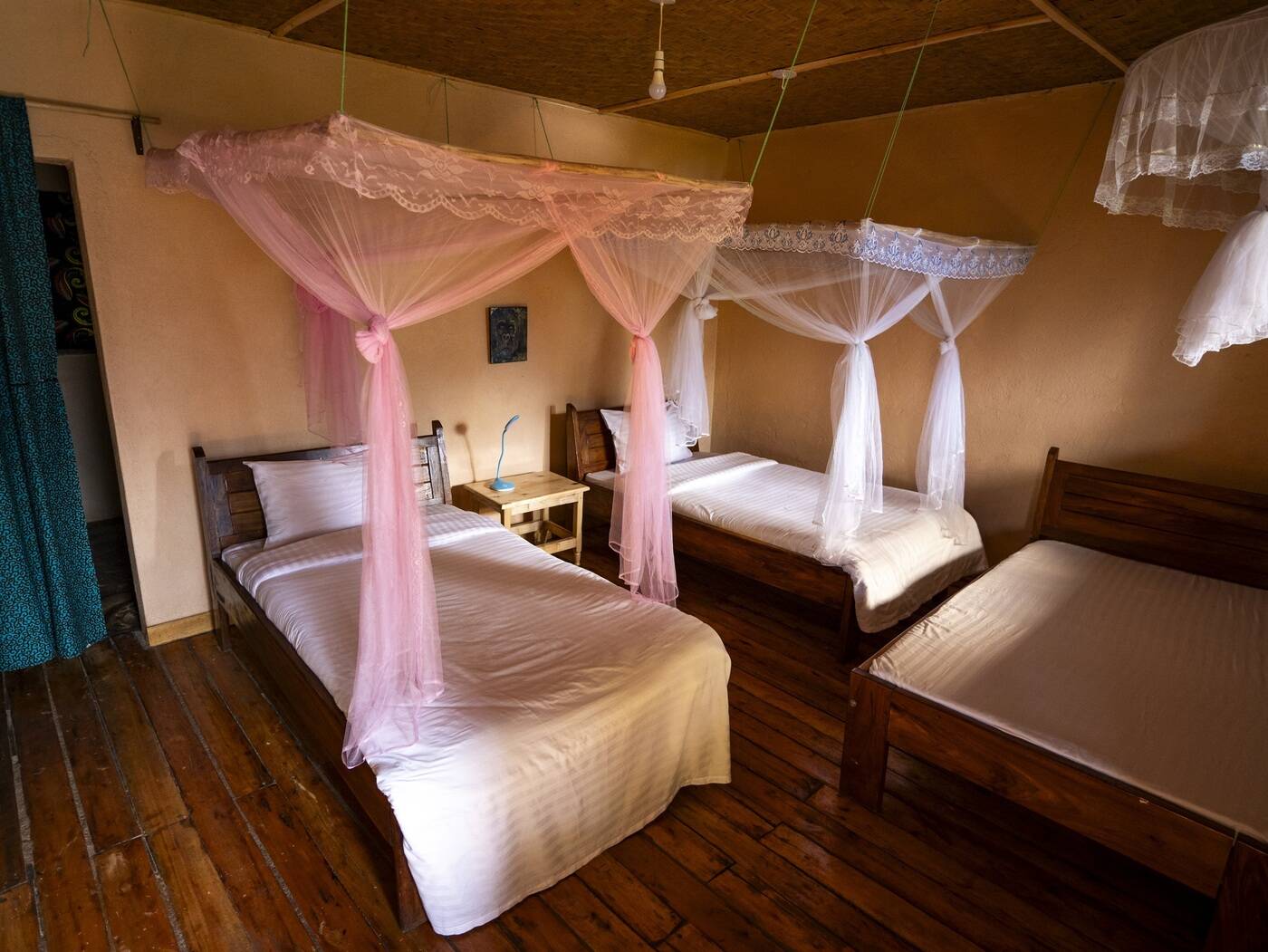 Während deiner Freiwilligenarbeit mit den Gorillas wohnst du in einem Camp, das an deine Einsatzstelle angrenzt. In der Regel teilst du dir dein Zimmer mit 1-2 weiteren Volunteers des gleichen Geschlechts. Das Badezimmer nutzt du zusammen mit den anderen Volunteers. Neben Toilette und Waschbecken gibt es auch eine Warmwasserdusche.