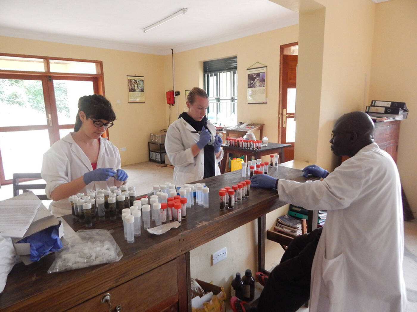 Während deiner Freiwilligenarbeit mit Gorillas in Uganda unterstützt du das Conservation Center. Dort werden z.B. Kotproben von Gorillas und Nutztieren aus den Dörfern gesammelt und auf Krankheiten untersucht. Außerdem gibt es einen Tierarzt-Service, der in den Gemeinden grundlegende Behandlungen der Nutztiere durchführt. Dazu gehören auch Tollwutimpfungen und Kastrationen von Hunden und Katzen.