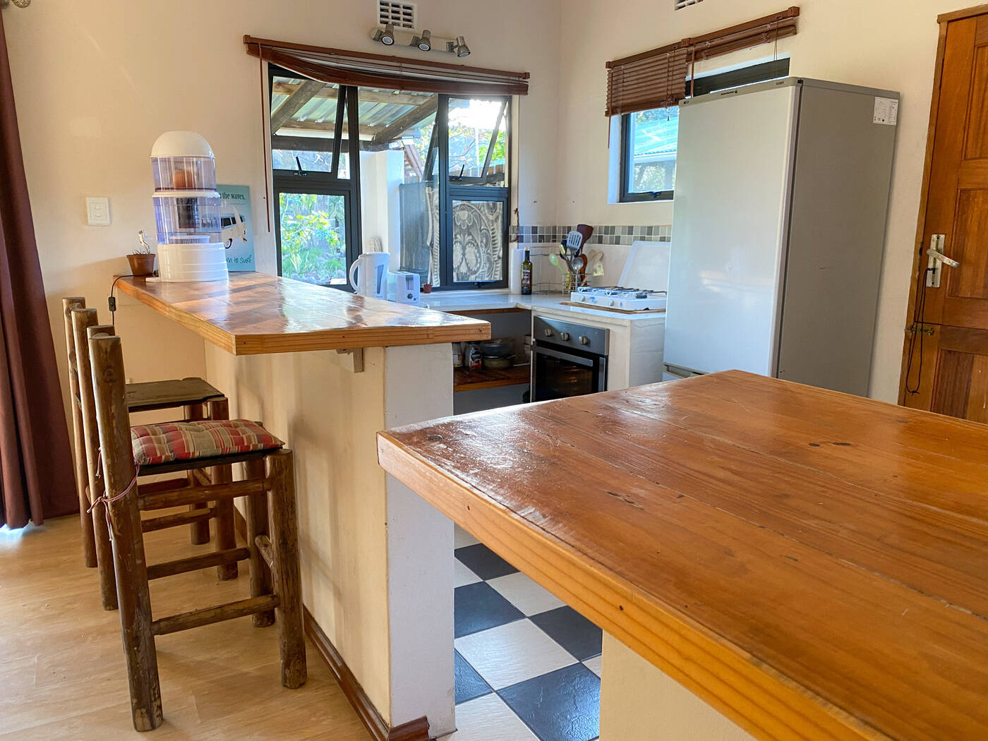 Das Volunteer House besteht aus zwei Gebäuden. Das Haupthaus verfügt über drei Zimmer und bietet Platz für insgesamt sechs Personen. Es gibt ein Wohnzimmer, eine offene und voll ausgestattete Küche, ein Gemeinschaftsbad mit Dusche, eine überdachte Terrasse und einen Garten.