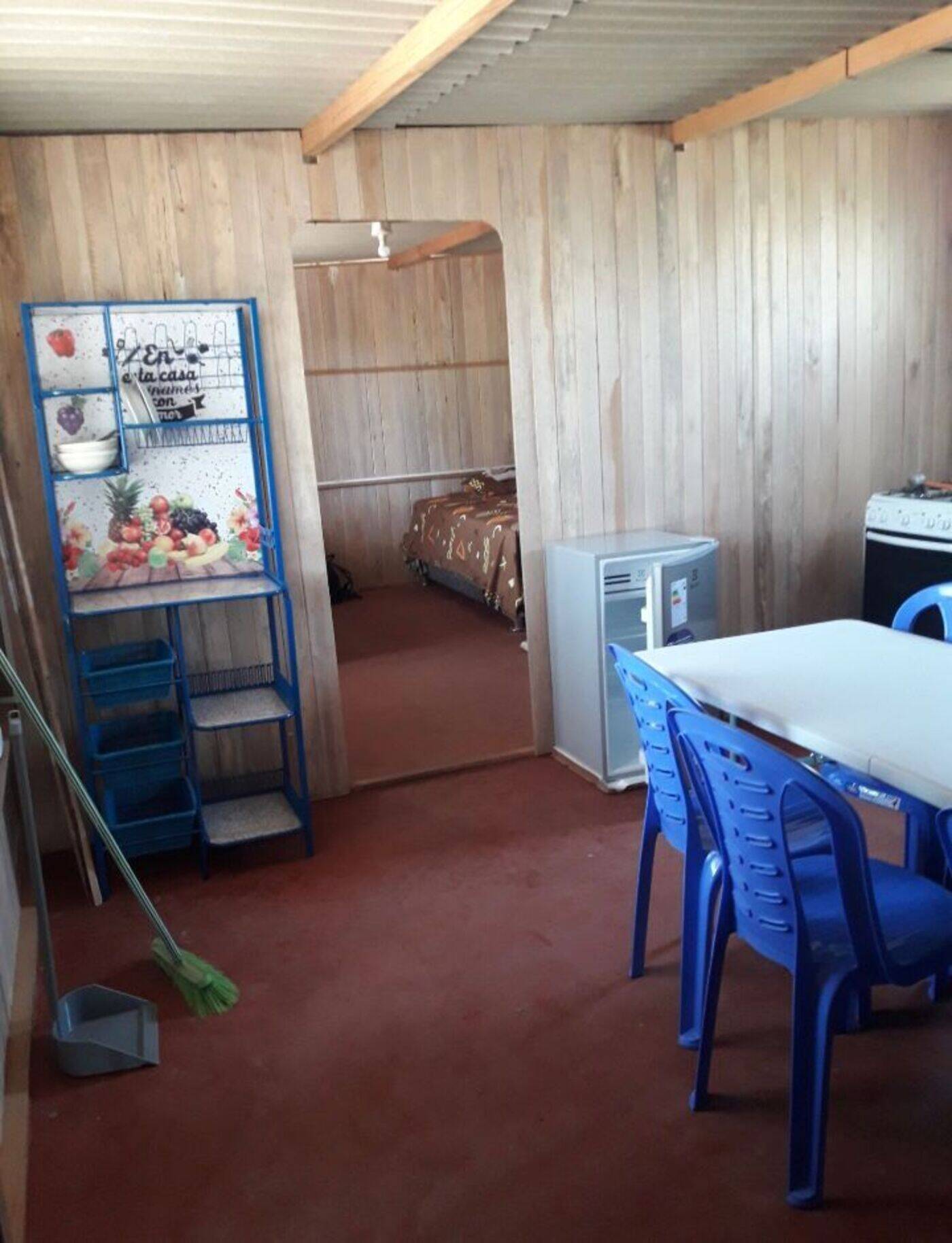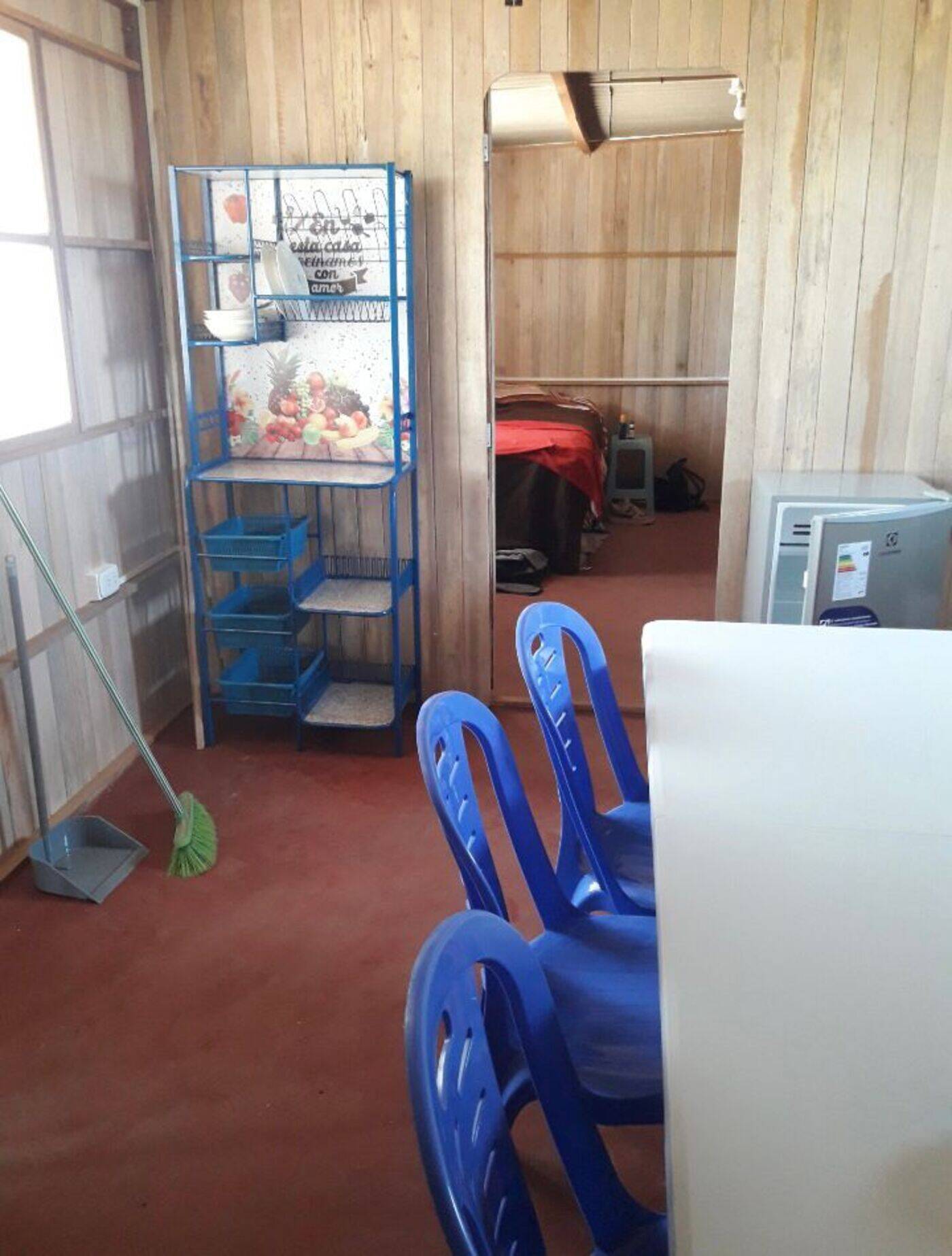 Du hast die Möglichkeit, in einem Holzhaus zu wohnen, zu dem ein Essensraum mit einem großen Tisch, eine voll ausgestattete Küche mit Kühlschrank, Ofen und Waschmaschine sowie ein Badezimmer mit Dusche und warmem Wasser gehören. In diesem Holzhaus befinden sich zwei Schlafräume mit jeweils zwei Doppelbetten und zwei Kleiderschränken.