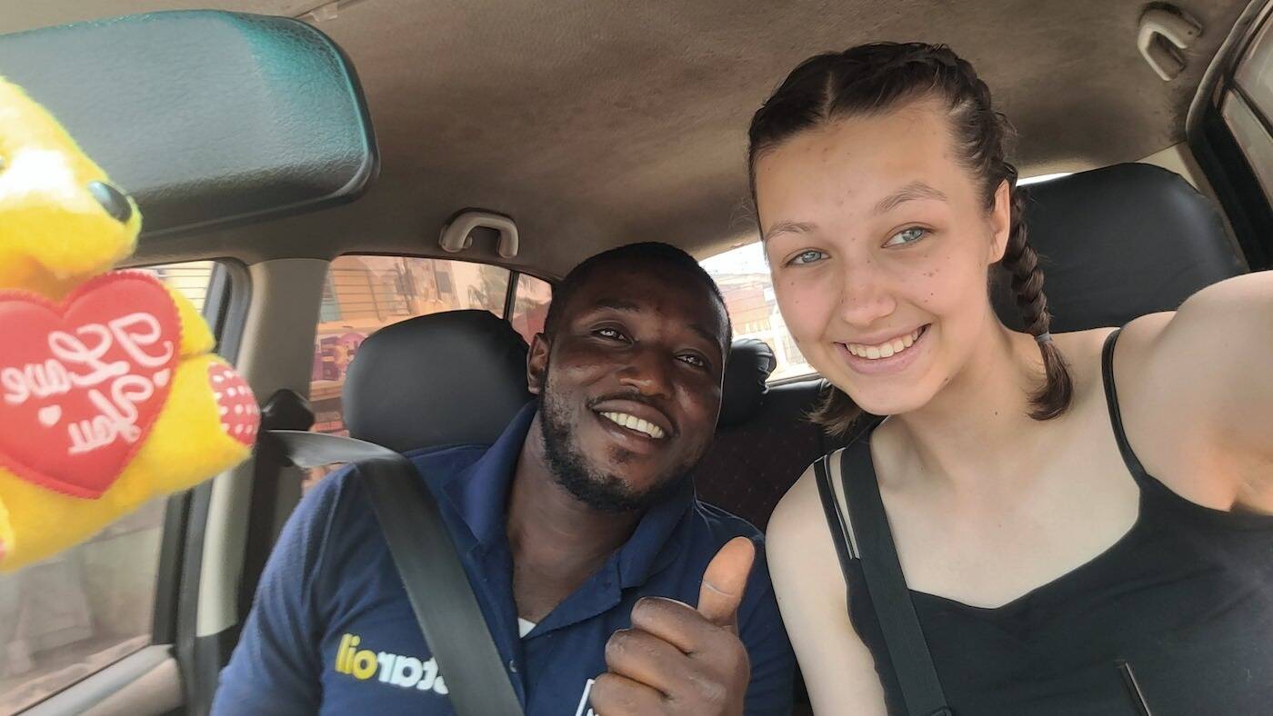 Ich bin am Mittwoch in Accra angekommen. Mein Hinflug verlief nach Plan, sodass ich gegen 17 Uhr in Accra landete. Direkt als ich das Flugzeug verließ, empfingen mich die Mitarbeitenden des Flughafens freundlich und wiesen mir den Weg. Nachdem mein Visum und mein Impfausweis geprüft wurden, fand ich mich am Gepäckband wieder, wo ich während des Wartens erstmals Ghana richtig wahrnahm. Die warme, dicke Luft und die vielen Menschen, die sich offensichtlich nicht kannten und trotzdem miteinander redeten. Ich habe mich von Anfang an willkommen und wohl in dem Land gefühlt. Mit meinem Gepäck verließ ich das Gebäude und wartete etwa eine Dreiviertelstunde, bis mich zwei Leute ansprachen, die ebenfalls Freiwillige von RGV waren und mich abholten. Eine weitere Freiwillige war bei ihnen, sie war zufälligerweise im selben Flugzeug wie ich. Die Fahrt zum Student House war lang, weil der Verkehr an diesem Tag sehr stark war. Wir fuhren über die kaputten Straßen, losgelöst von jeglichen Verkehrsregeln, die man in Deutschland kennt und hörten AfroBeats, welche ich während der vier Wochen in Ghana zu lieben gelernt habe. Als wir ankamen, wurden wir von allen Freiwilligen herzlich empfangen und in unsere Zimmer eingeteilt. Ich war an dem Tag sehr müde, weshalb ich relativ schnell ins Bett ging.